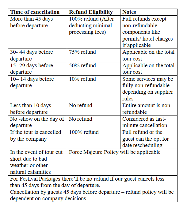 In the event of cancellation of tours/ packages by our esteemed patrons.